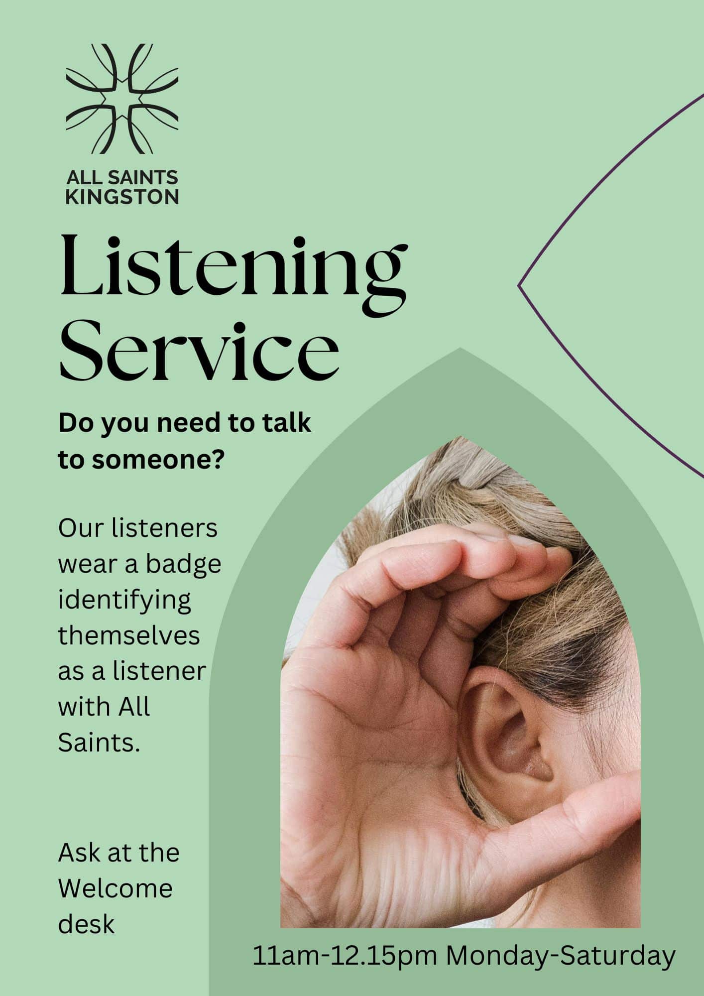 There is a 20 strong team of volunteers who have been interviewed, selected and trained in listening  skills.   In any given year we would engage with several hundred people, so since our beginning over 20 years ago we have welcomed thousands.  Someone is on duty in the cafe from Monday to Saturday  11am to 12.15pm and occasionally at other times. We wear a lanyard saying “listener” so people recognise us and the cafe staff if asked can point us out. It really does help to talk – and we’re here to listen.