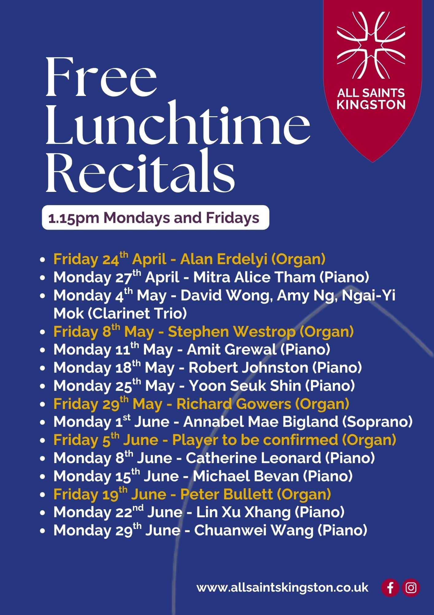FREE Lunchtime Recitals at All Saints Kingston