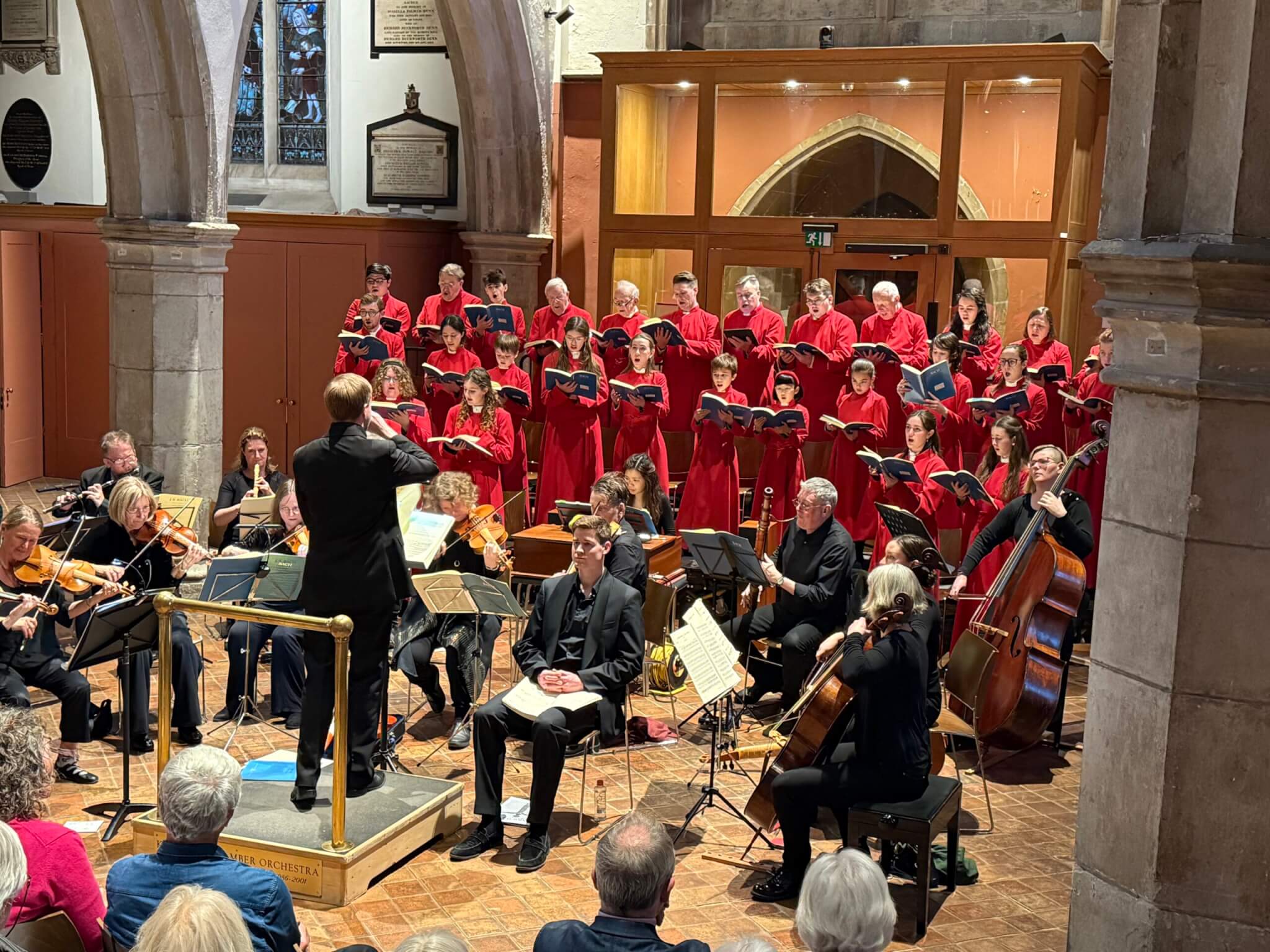 The Heritage Gallery (Choir Vestry): is a separate room to the northwest of the church with wooden flooring and panelled wooden sliding doors housing an extensive music library and choir robes, hence the name. The vaulted ceiling and church windows make this a unique space which is airy and flexible suitable for meetings with its newly installed AV system (Aug 24), smaller intimate parties and receptions or as an additional area for larger events in the main church. Capacity: 25-30 around table/s 30+ concert (theatre) style.