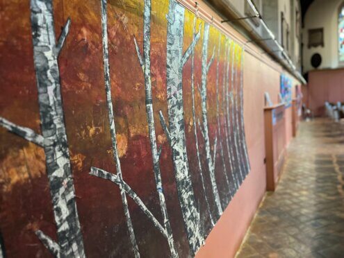 - the church grounds – exhibitions can be held in the church grounds. The pathways lend themselves beautifully to lead people around the church viewing either large sculptural works, photography or banner art work.